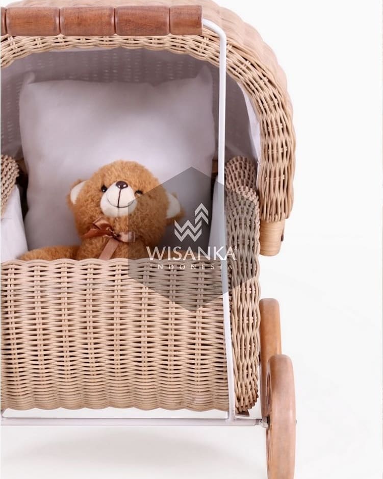 Your kids will absolutely love pushing around their favourite dolls and toys in the Rattan Doll Pram. This classically designed pram for dolls makes a lovely addition to any child’s toy collection and can easily be handed down. As well as being fun to play with, the pram is also beautiful and makes an excellent decorative room feature due to its chic and stylish. Created by Indonesia Rattan, this charming rattan doll pram has been carefully handcrafted using natural rattan and the wheels made from solid wood.