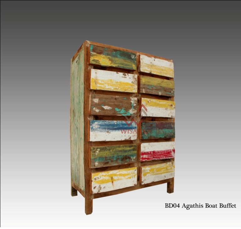 Retro style buffet constructed from Recycled Hardwoods, Teak and Old Boat Timber. Make a statement in your home. This timber was used to make fishing boats, and has since been recycled into furniture items. This Buffet boat wood are ideal for indoors where they add a kind of rustic elegance to your decor.