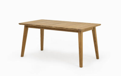 Aleena Outdoor Dining Table – A solid teak wood top with a powder-coated aluminum frame, combining strength with elegance.