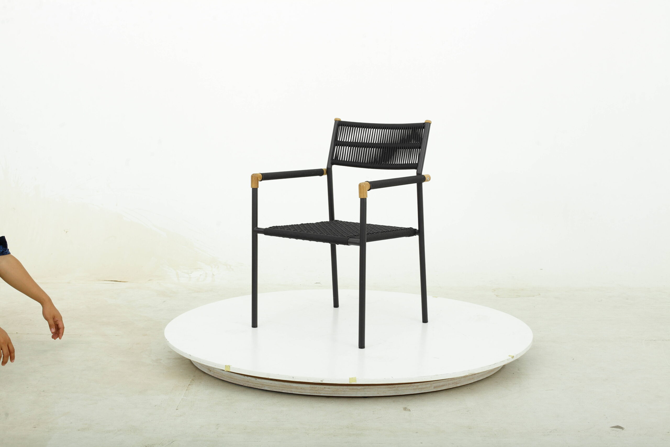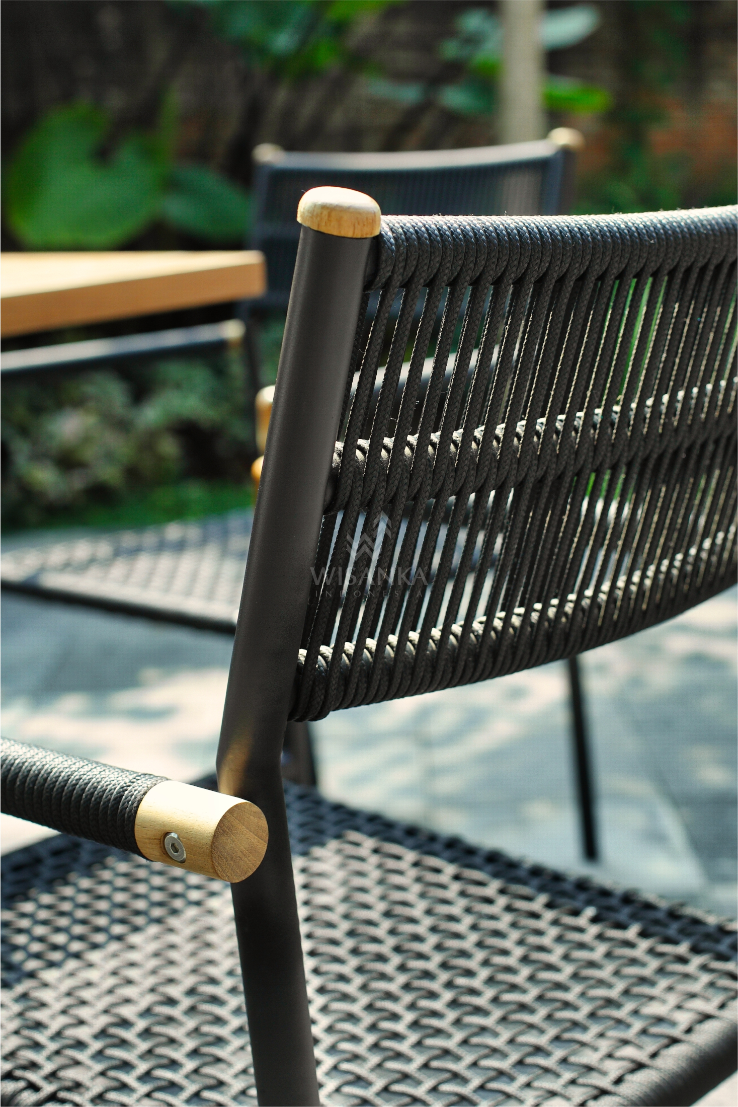 Andra Outdoor Dining Chairs – Designed with a sleek frame and woven rope accents for a comfortable yet modern touch.