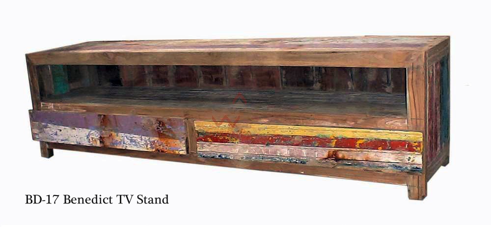 Our Boat Wooden TV Stand is a crazy mix of colors. You’ll find plenty of storage with a large 3-shelf cupboard and two bottom drawers. The free standing sideboard is covered with a wide variety of wooden strips on the top, sides and front.