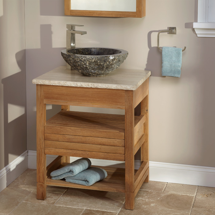 Teak Bathroom Vanity with Stone Vessel Sink – Elegant, Durable & Space-Saving