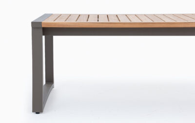 The Wilson Outdoor Living Set combines high-quality teak wood, known for its resistance to moisture and decay, with a robust powder-coated aluminium structure. This thoughtful pairing ensures not only longevity but also a sleek, modern look. The natural fine sanded finish highlights the rich grain of the teak, while the frame’s powder-coated paint adds a clean, weather-resistant touch.
